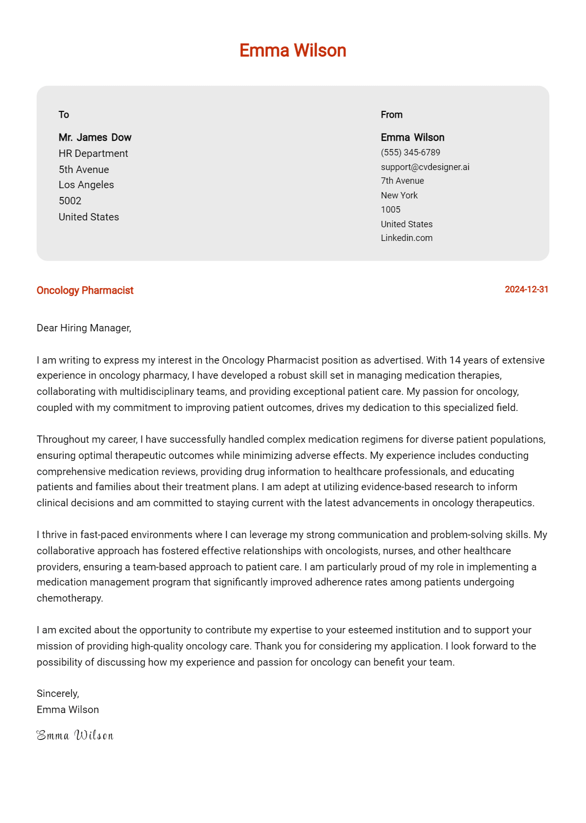 Lack of Enthusiasm: A cover letter that lacks passion may fail to engage the reader. Express your genuine interest in oncology pharmacy and your commitment to patient care to make a more compelling case.