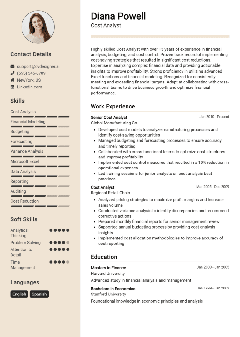 16 Cost Analyst Resume Examples And Templates for 2025