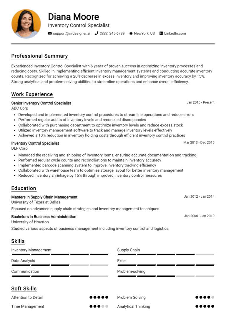 16 Inventory Control Specialist Resume Examples And Templates for 2025