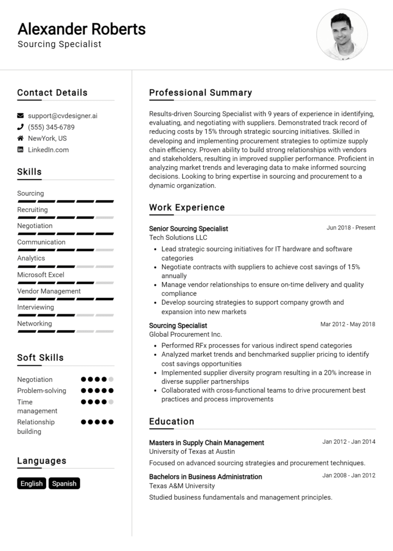 16 Sourcing Specialist Resume Examples And Templates for 2025 (Downloadable)