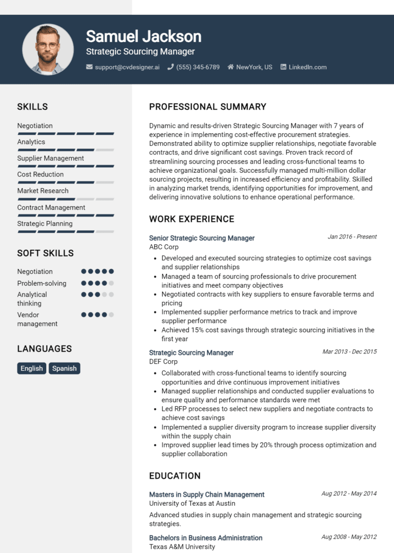 16 Strategic Sourcing Manager Resume Examples And Templates for 2025
