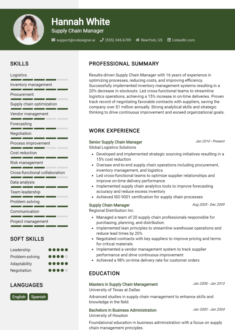 16 Supply Chain Manager Resume Examples And Templates for 2025