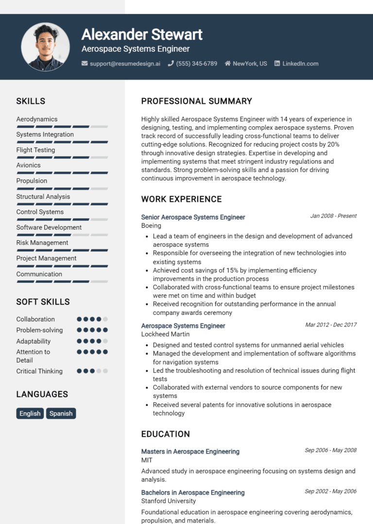 19 Aerospace Systems Engineer Resume Examples And Templates for 2025