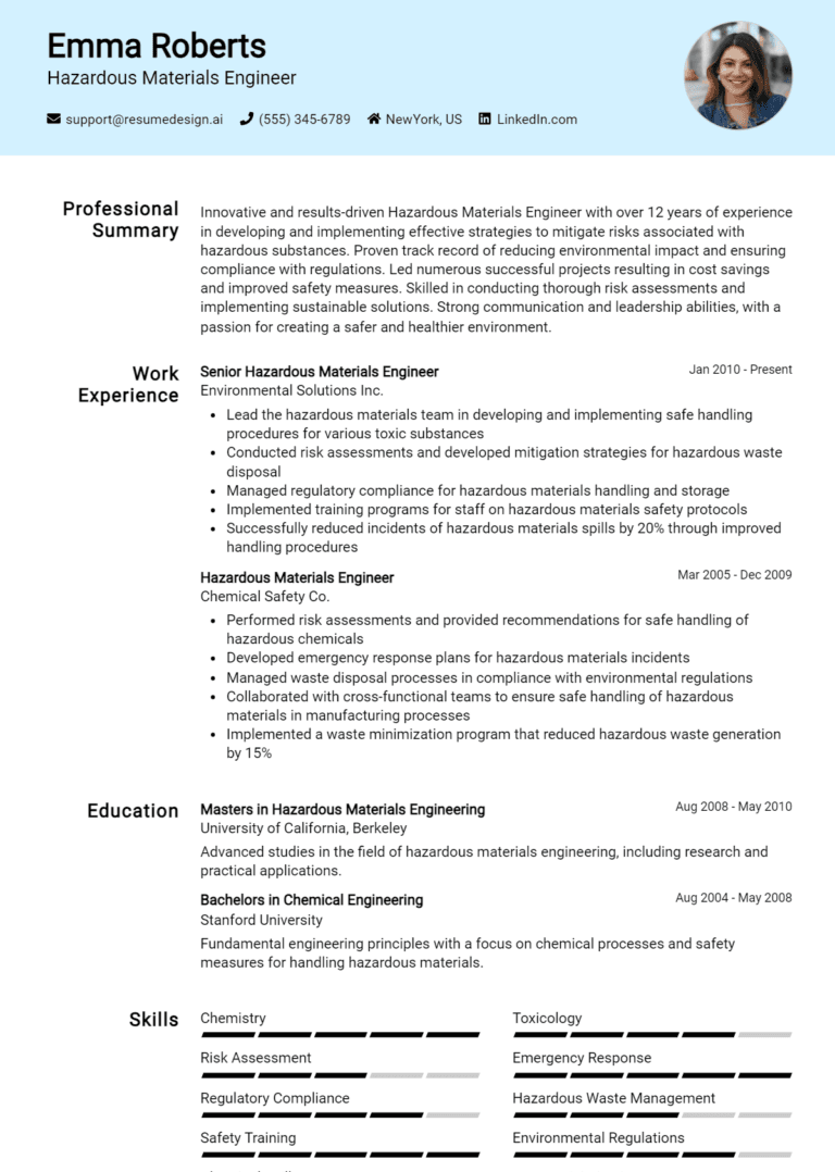 19 Hazardous Materials Engineer Resume Examples And Templates for 2025