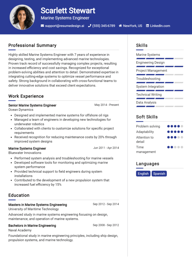 19 Marine Systems Engineer Resume Examples And Templates for 2025