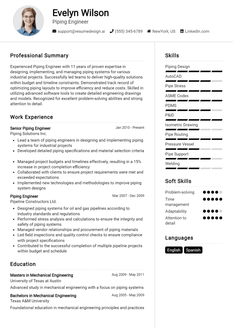 19 Piping Engineer Resume Examples And Templates for 2025: Top Tips