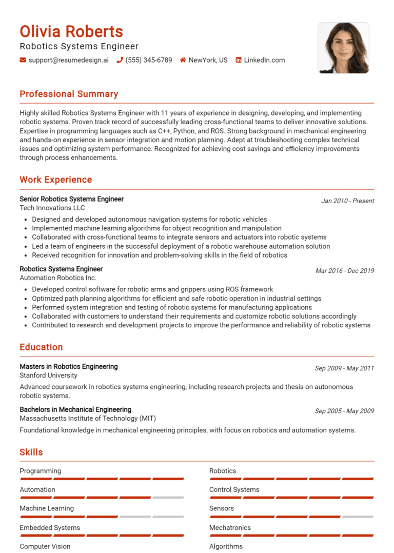19 Robotics Systems Engineer Resume Examples And Templates for 2025