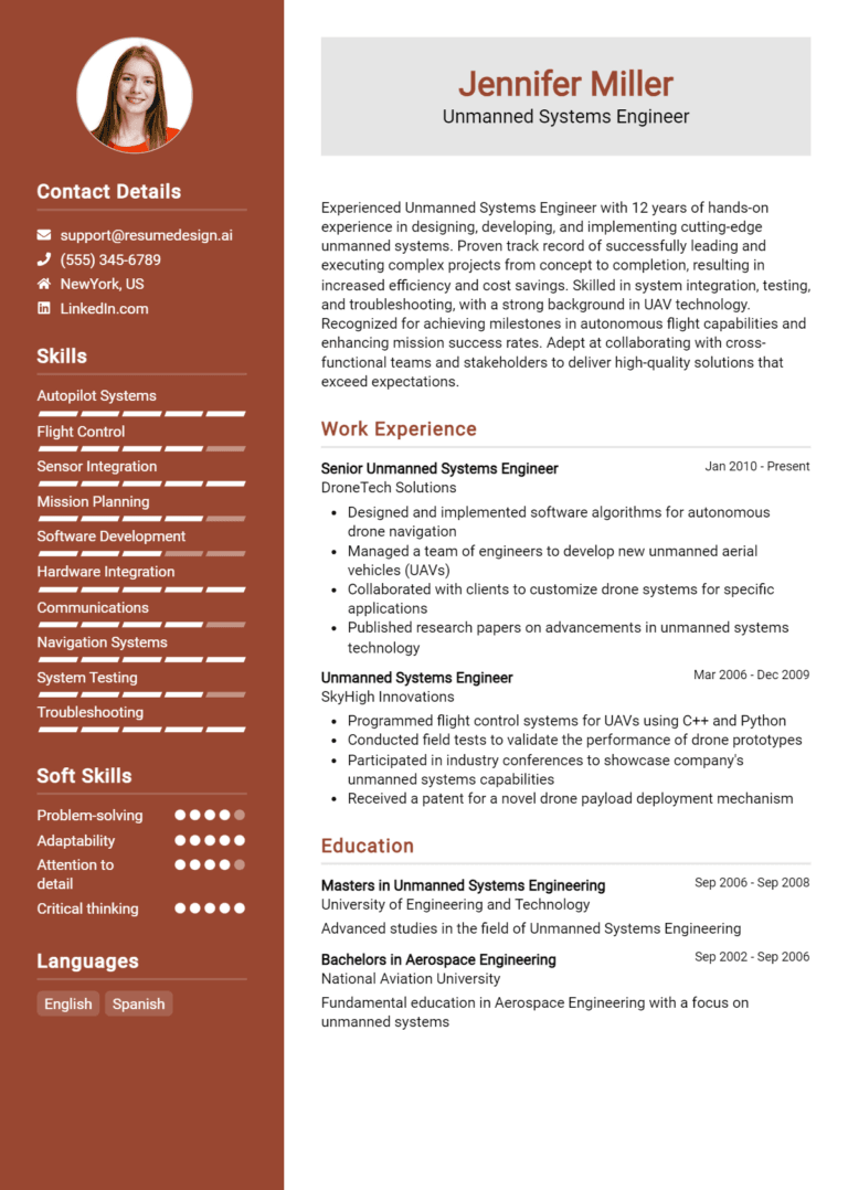 19 Unmanned Systems Engineer Resume Examples And Templates for 2025 (Downloadable)