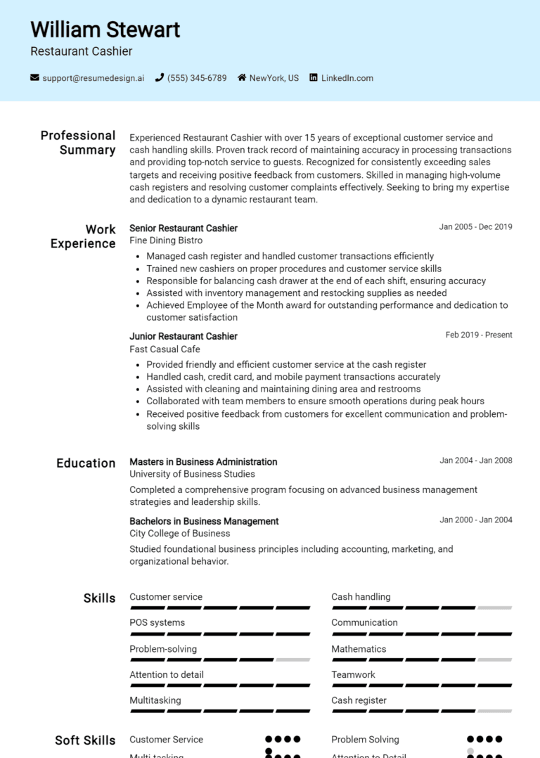 11 Restaurant Cashier Resume Examples And Templates for 2025