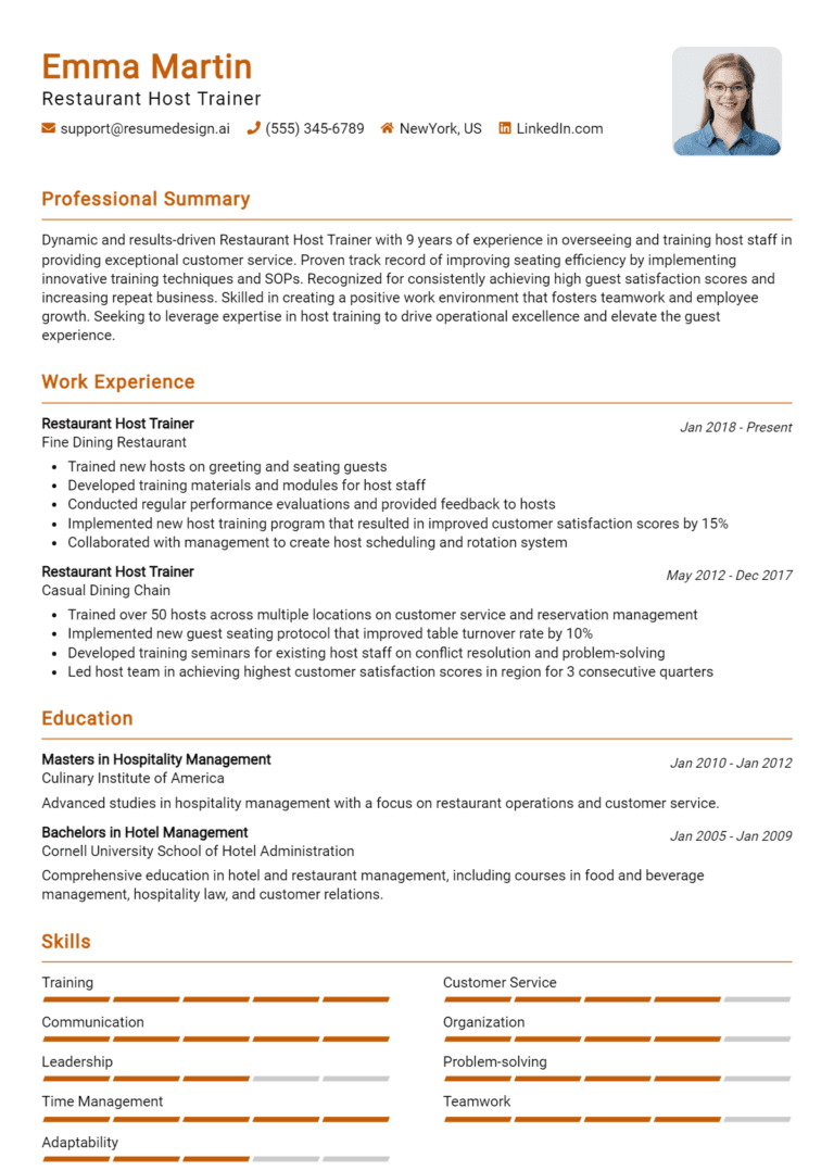 11 Restaurant Host Trainer Resume Examples And Templates for 2025