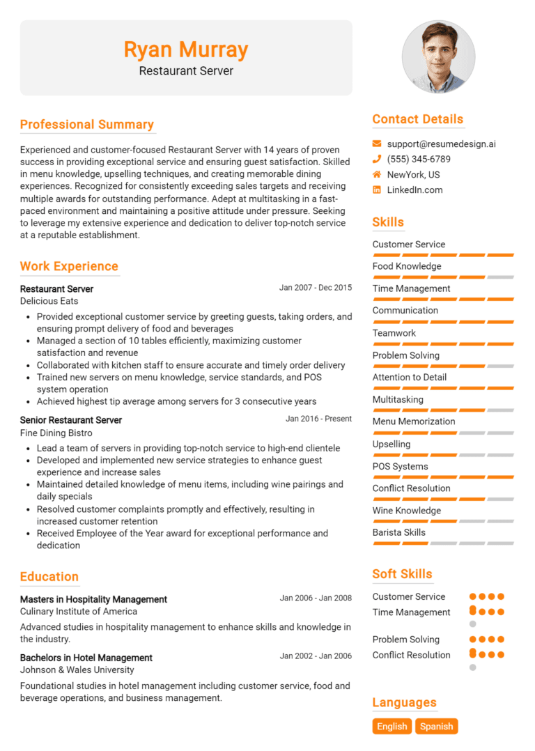 11 Restaurant Server Resume Examples And Templates for 2025: Expert Tips