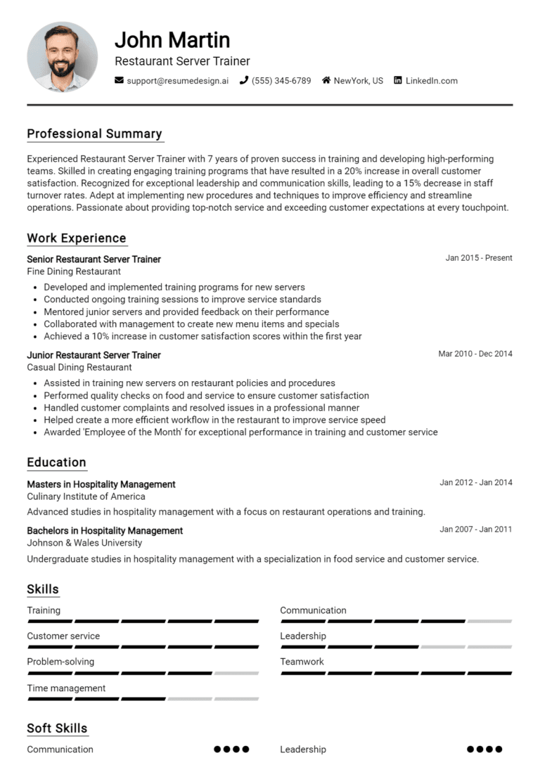 11 Restaurant Server Trainer Resume Examples And Templates for 2025