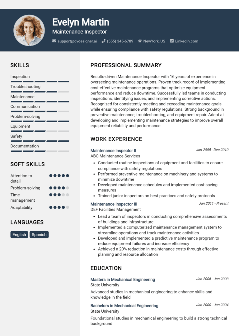 14 Maintenance Inspector Resume Examples And Templates for 2025