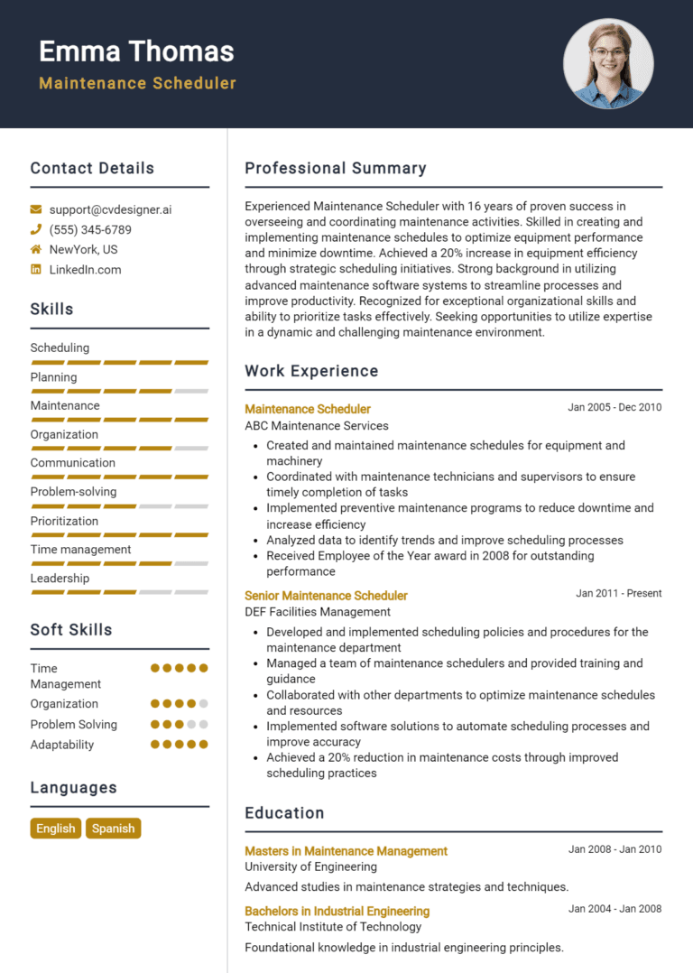 14 Maintenance Scheduler Resume Examples And Templates for 2025
