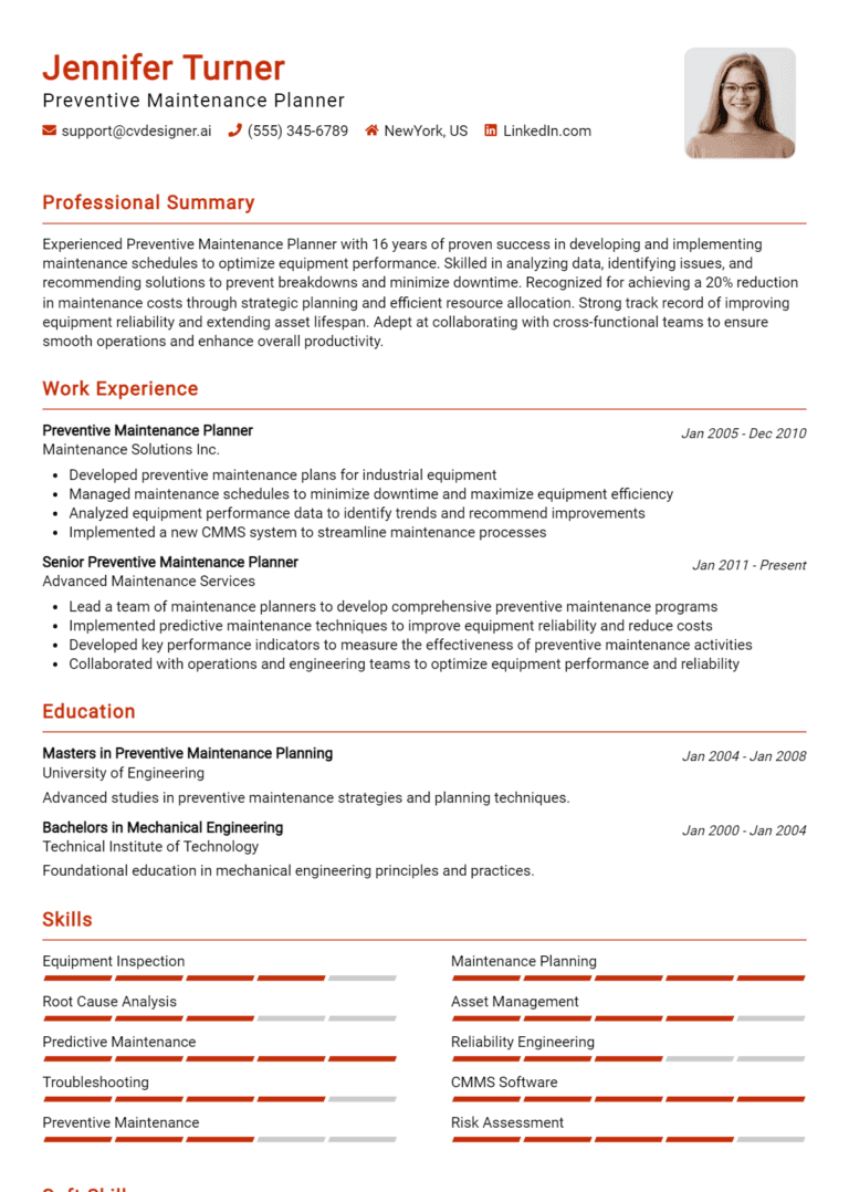 14 Preventive Maintenance Planner Resume Examples And Templates for 2025