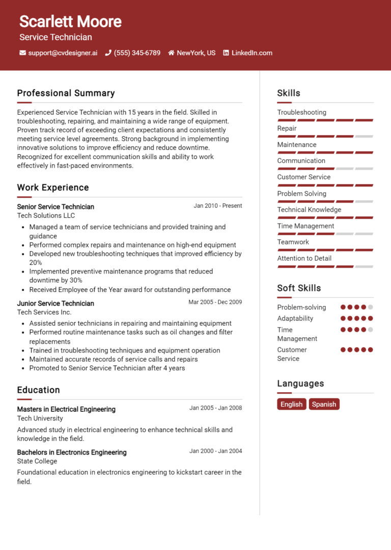 14 Service Technician Resume Examples And Templates for 2025: Top Tips