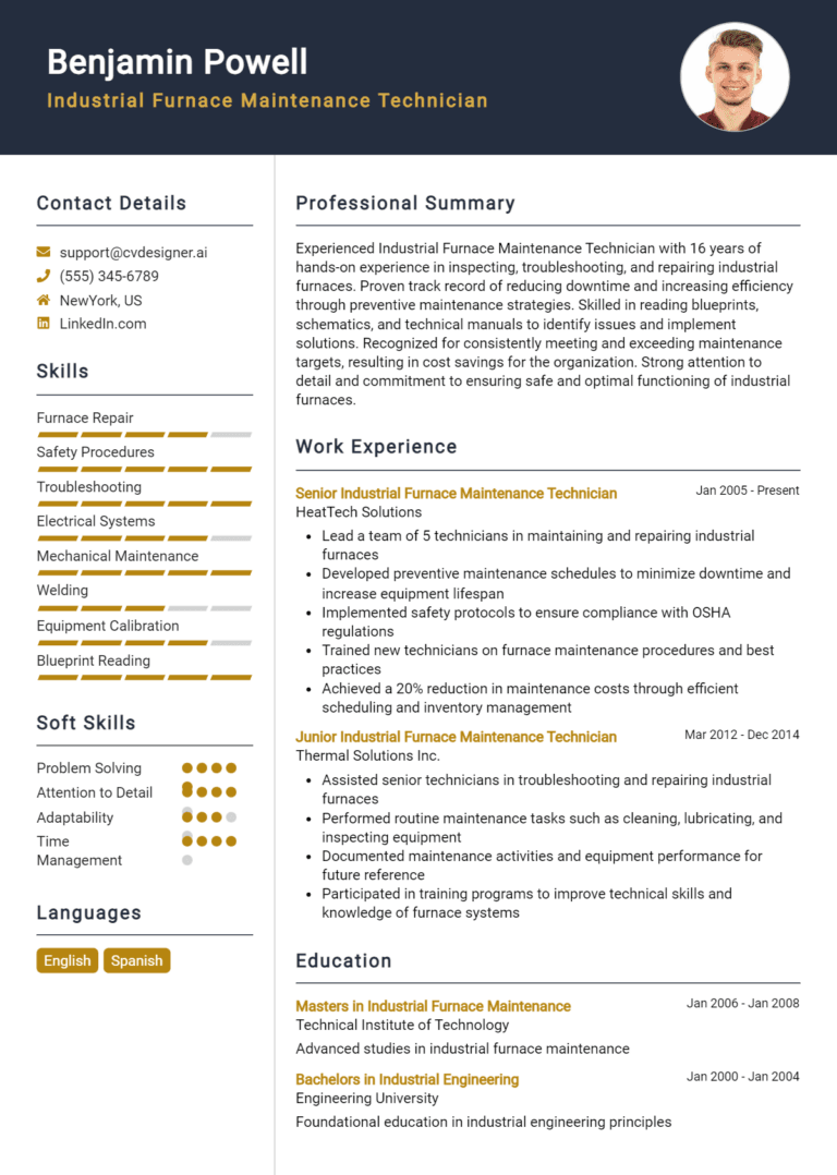 17 Industrial Furnace Maintenance Technician Resume Examples And Templates for 2025
